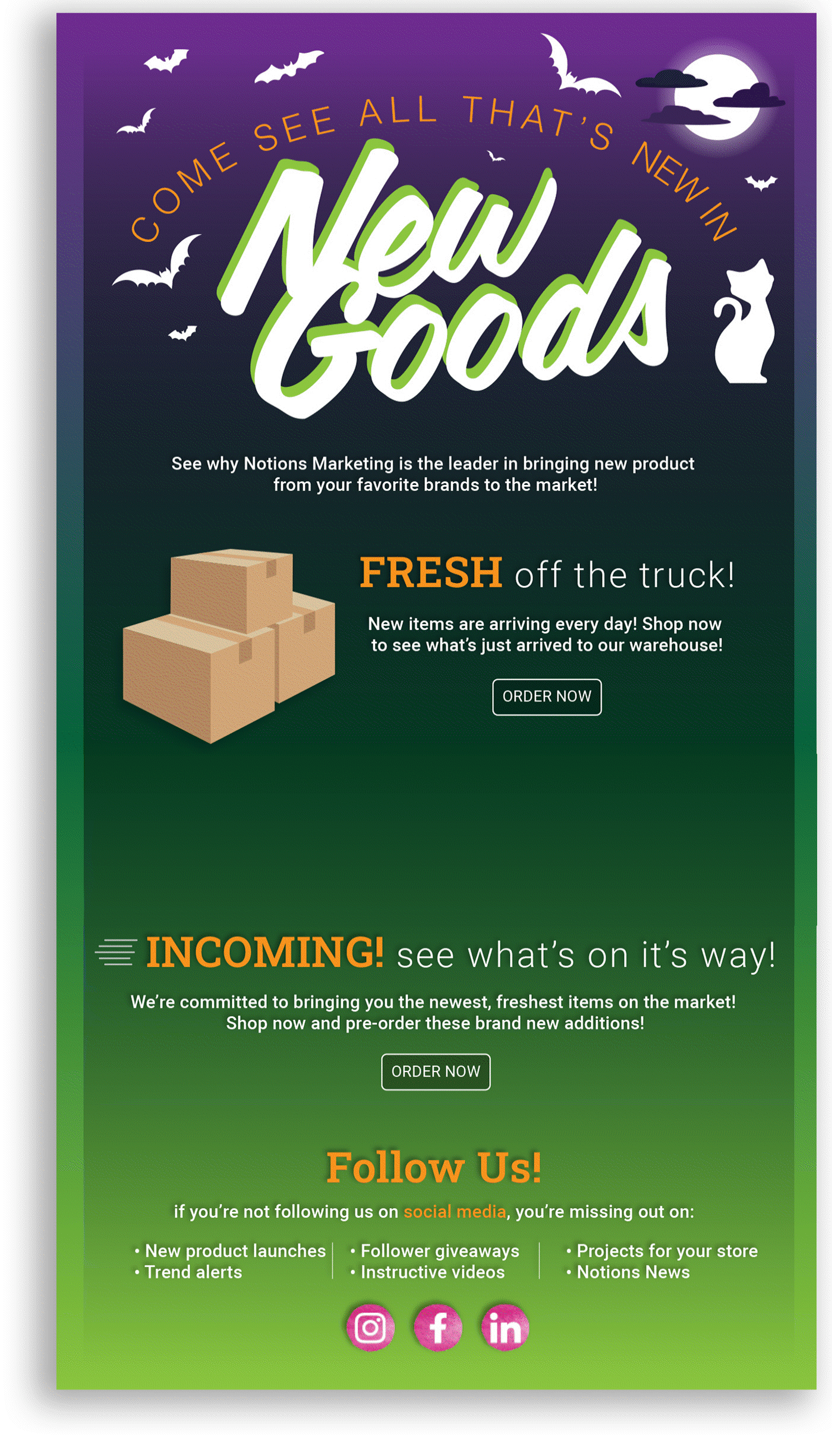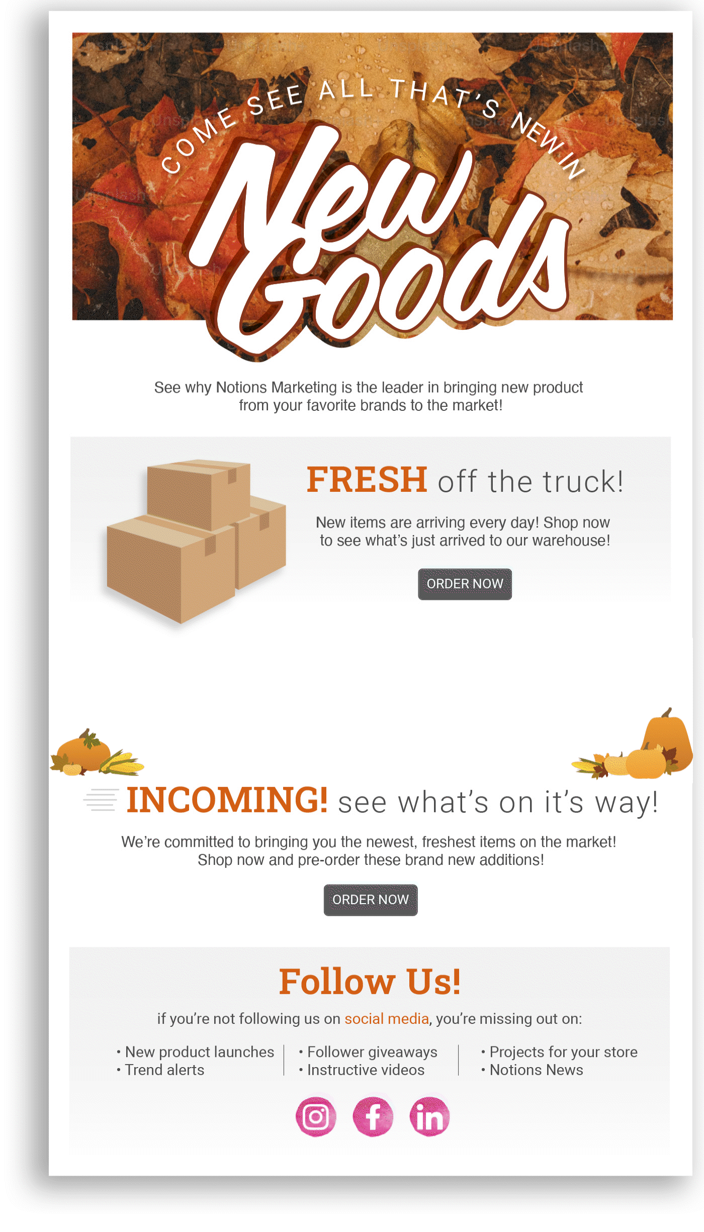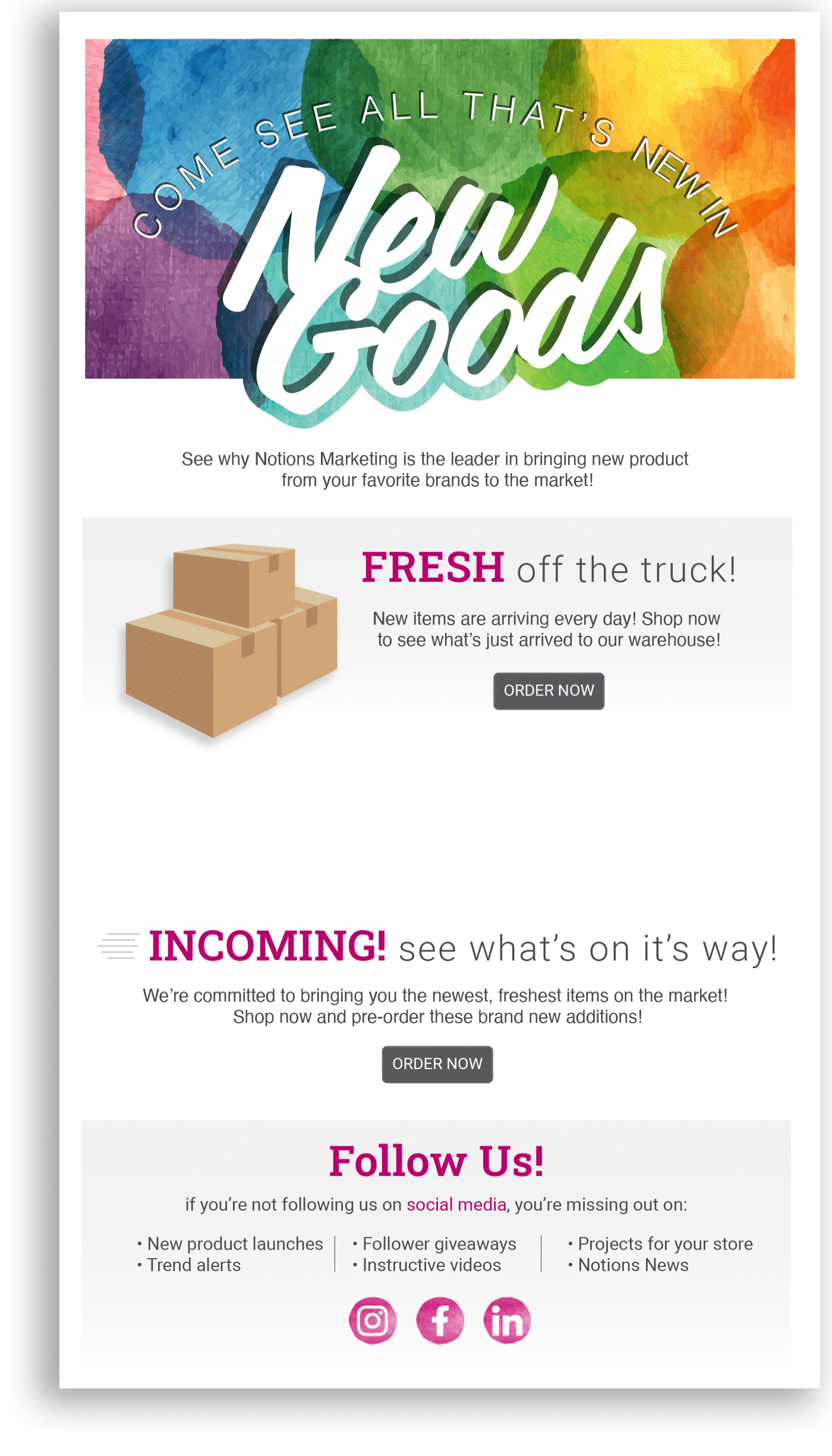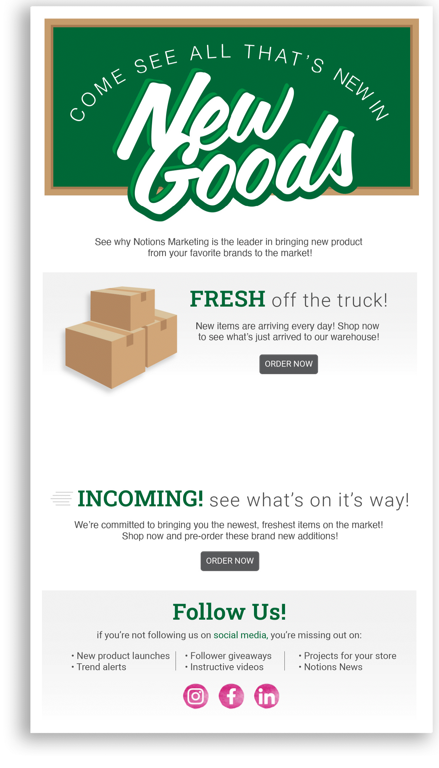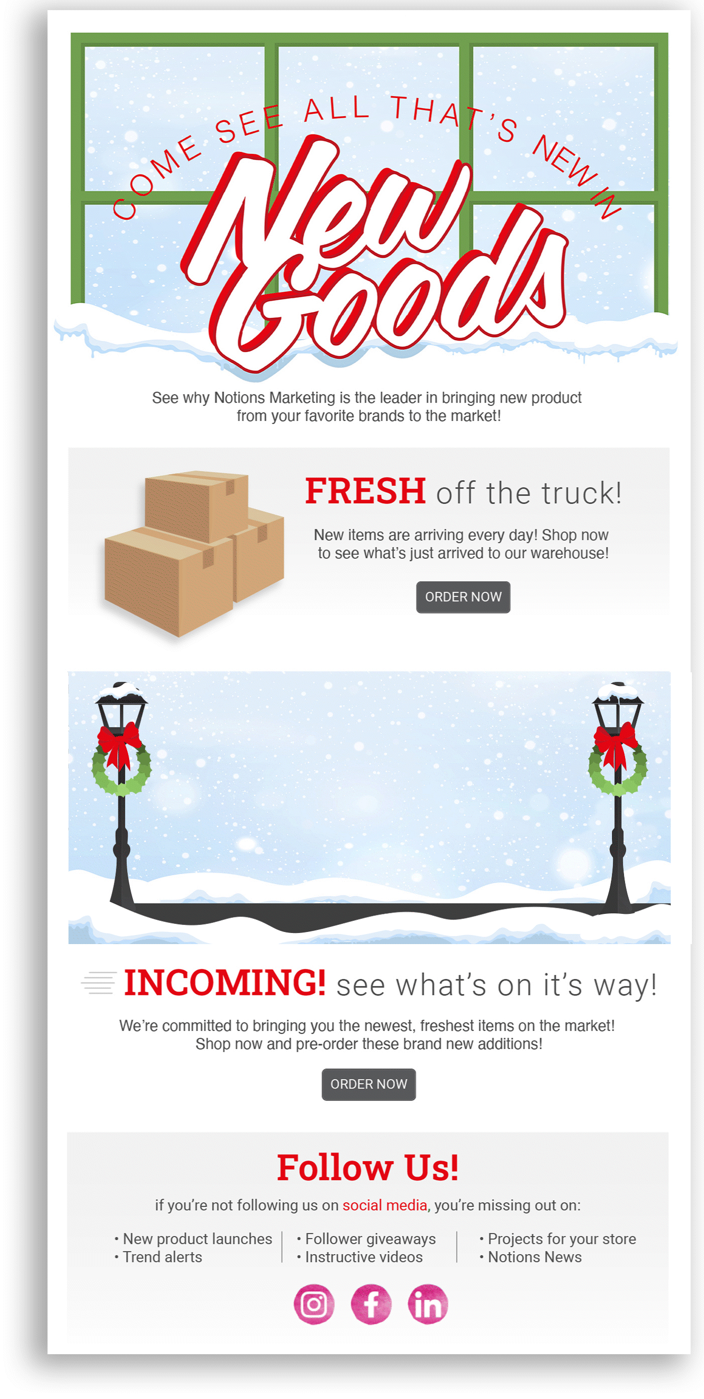 These Eblasts were created to go out every other week to remind customers of what was newly added and to inform them of what had just landed in the warehouse. Seasonal variations depend on the time of year.